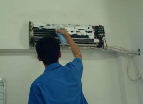 | 上饶市空调维修师傅给上饶市用户上门维修清洗空调。 |